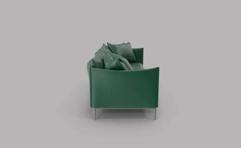 The Emerald Comfort sofa is a luxurious seating option that brings a bold touch of color to any living space. Wrapped in high-quality, soft leather, this sofa offers both style and substance. The deep green hue adds a sense of calm and sophistication, while the plush cushions provide ultimate comfort. Supported by sleek metal legs, the sofa exudes a modern charm perfect for contemporary interiors. Whether for lounging or entertaining, the Emerald Comfort sofa is a stylish centerpiece.