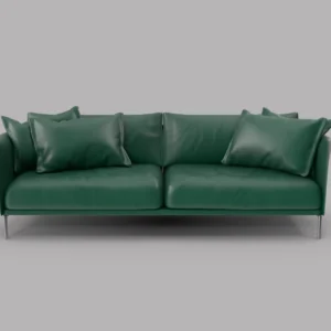 The Emerald Comfort sofa offers a striking deep green leather finish, plush cushions, and modern metal legs, making it a luxurious and stylish addition to any living room.